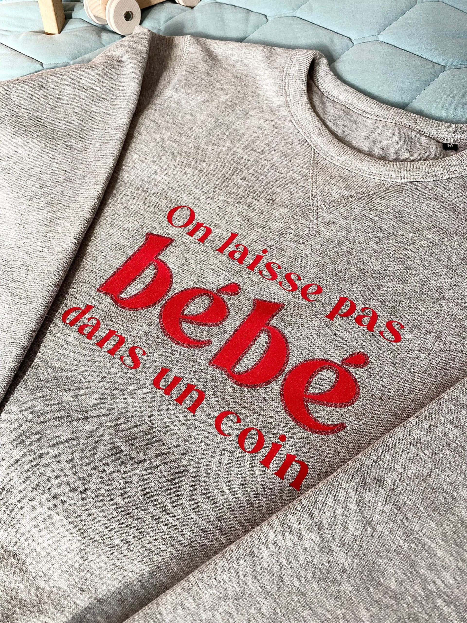 Exprimez votre passion avec le sweat-shirt femme culte – « On ne laisse pas bébé dans un coin » – Gris chiné